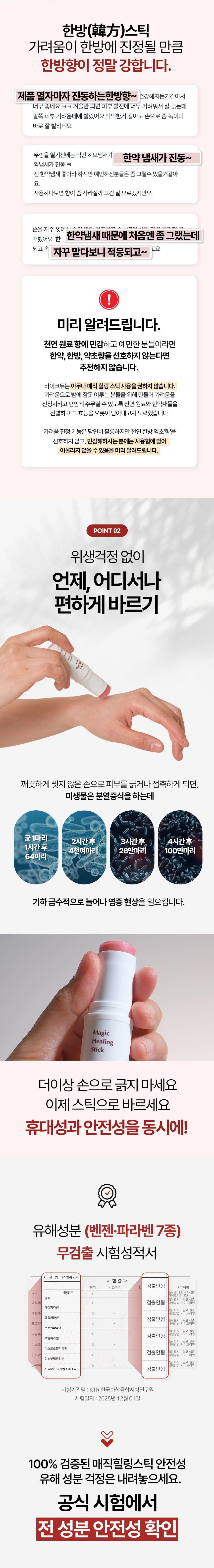 | 모든 원료성분 | 비즈왁스, 올리브오일, 시어버터, 지치뿌리추출물, 참당귀뿌리추출물, 토코페릴아세테이트, 지황뿌리추출물, 황벽나무껍질추출물, 인동덩굴꽃추출물, 황련추출물, 마데카식애씨드, 아시아틱애씨드, 아시아티코사이드, 마카다미아씨오일, 카프릴릭/카프릭트라이글리세라이드, 오레가노오일, 티트리잎오일, 라벤더오일, 제라니올, 리날룰, 리모넨, 유제놀 |